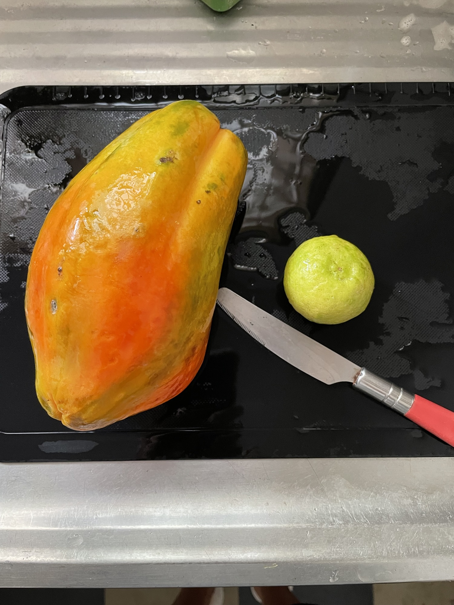 帰宅途中に八百屋さんでパパイヤ用にライムを買って帰った。(1個なんと20円もしない)