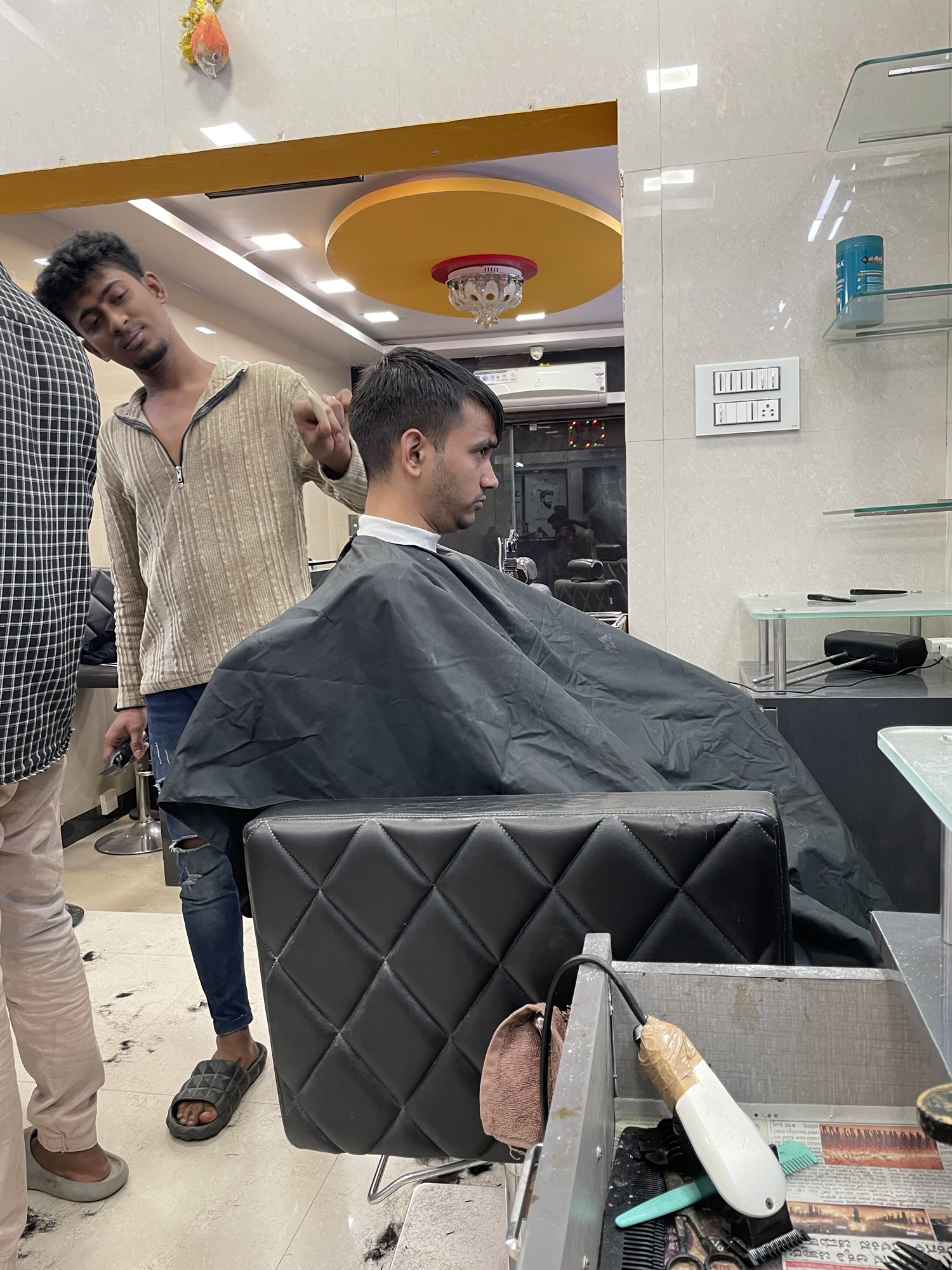 夜はアディの散髪に付き添い、インドで初の床屋に潜入。
