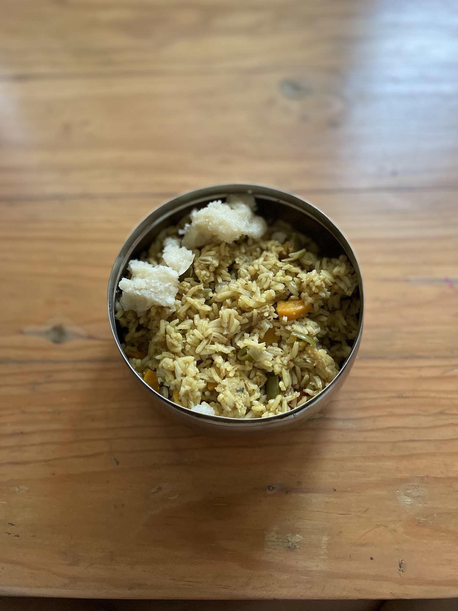 お昼は、今日もジヴァ飯で、ベジタブルライスバス。