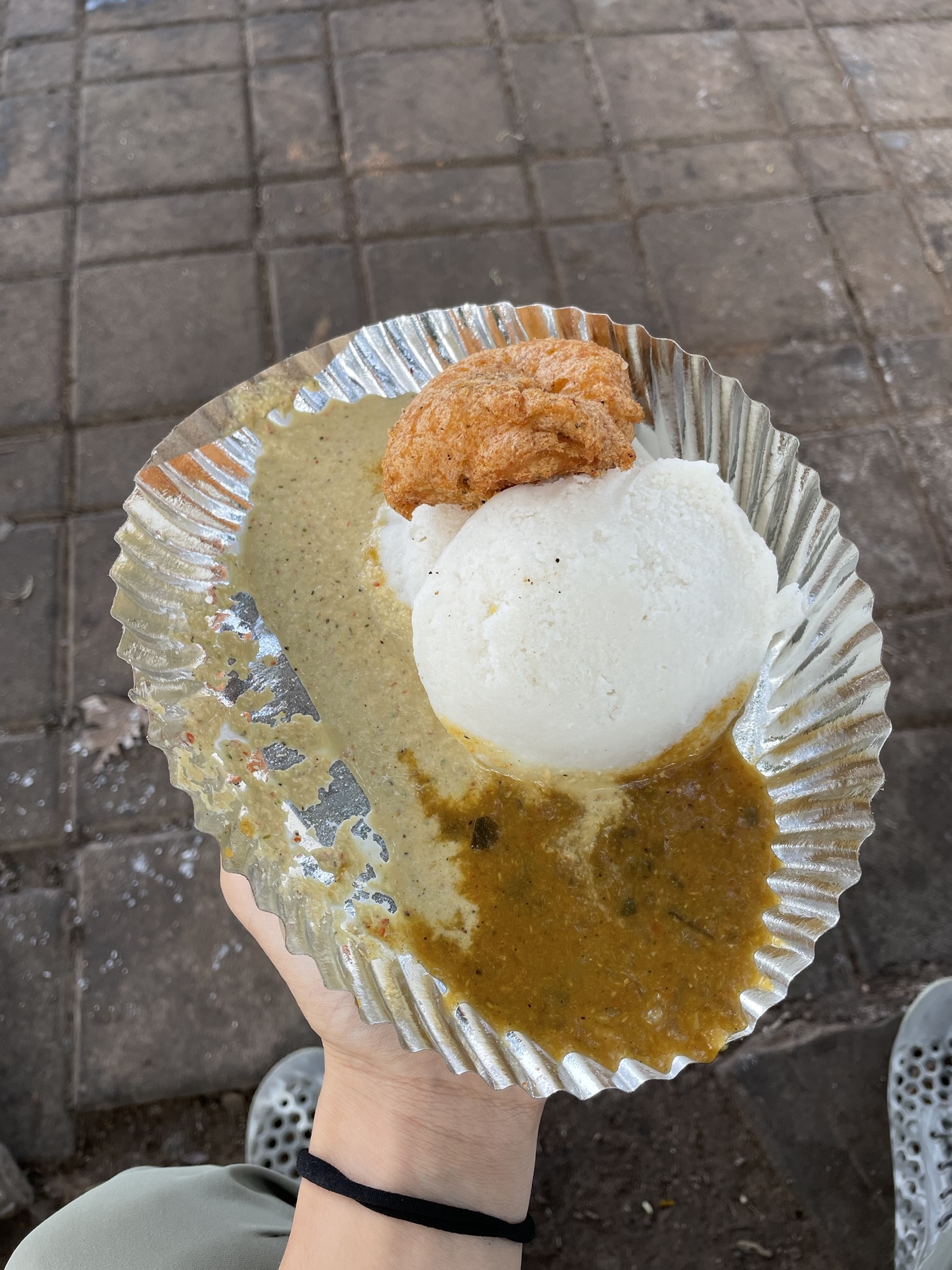 朝ご飯は、オススメされていた屋台インド飯にトライ。