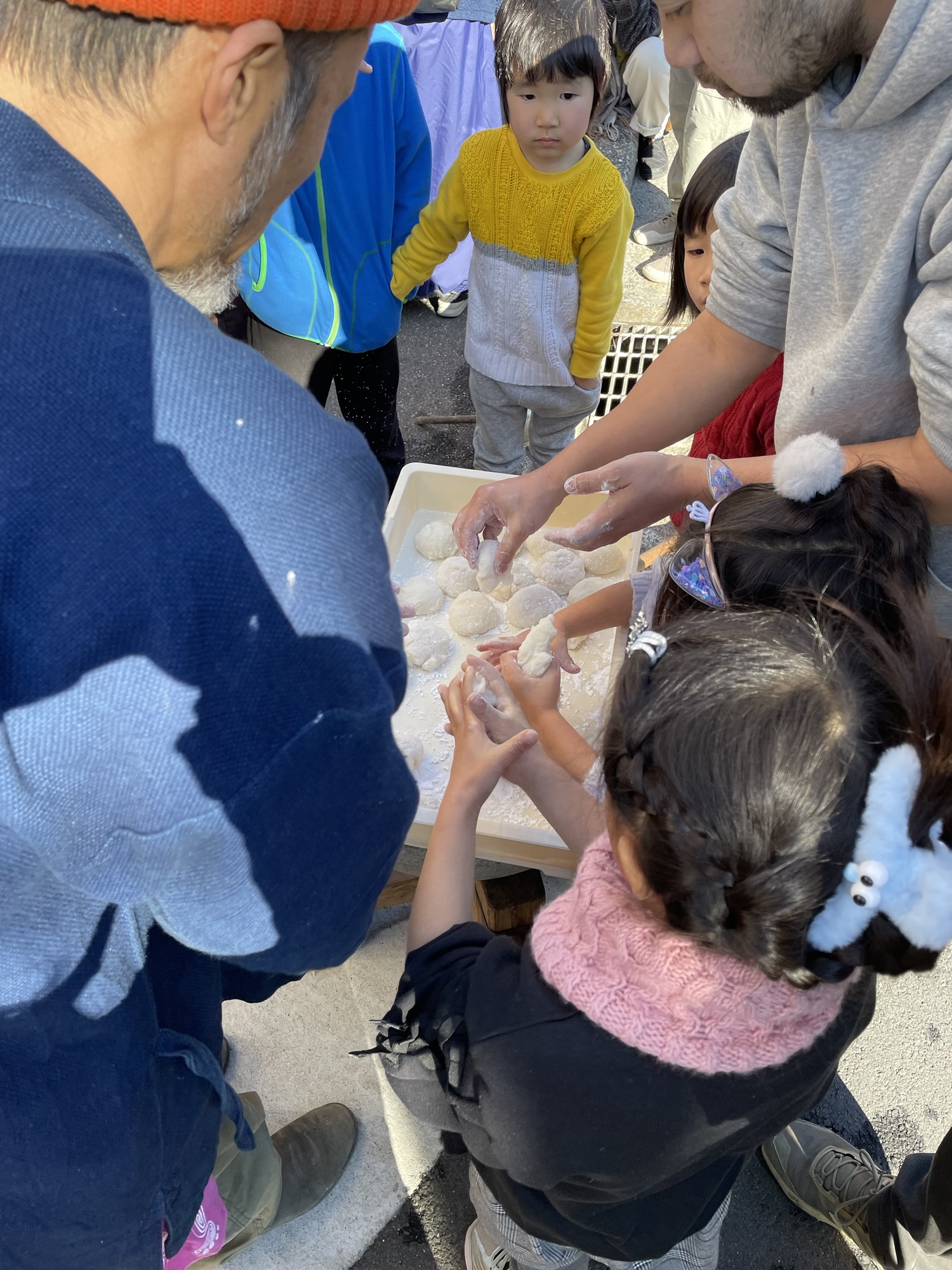 続いて、おにぎり屋さんのすぐ近くで行われるという餅つき会へ。