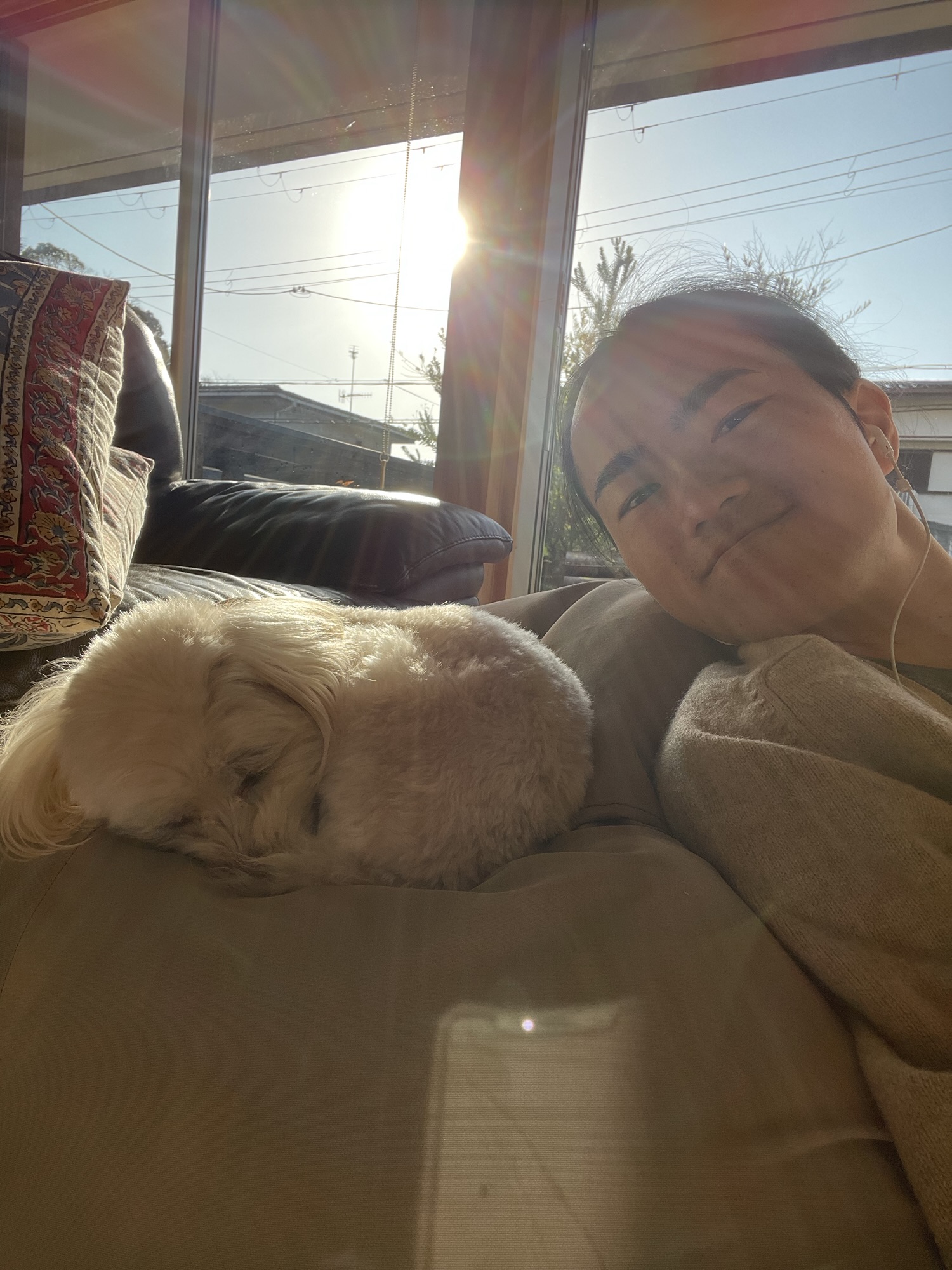午前中は、チーズと日向ぼっこしながら