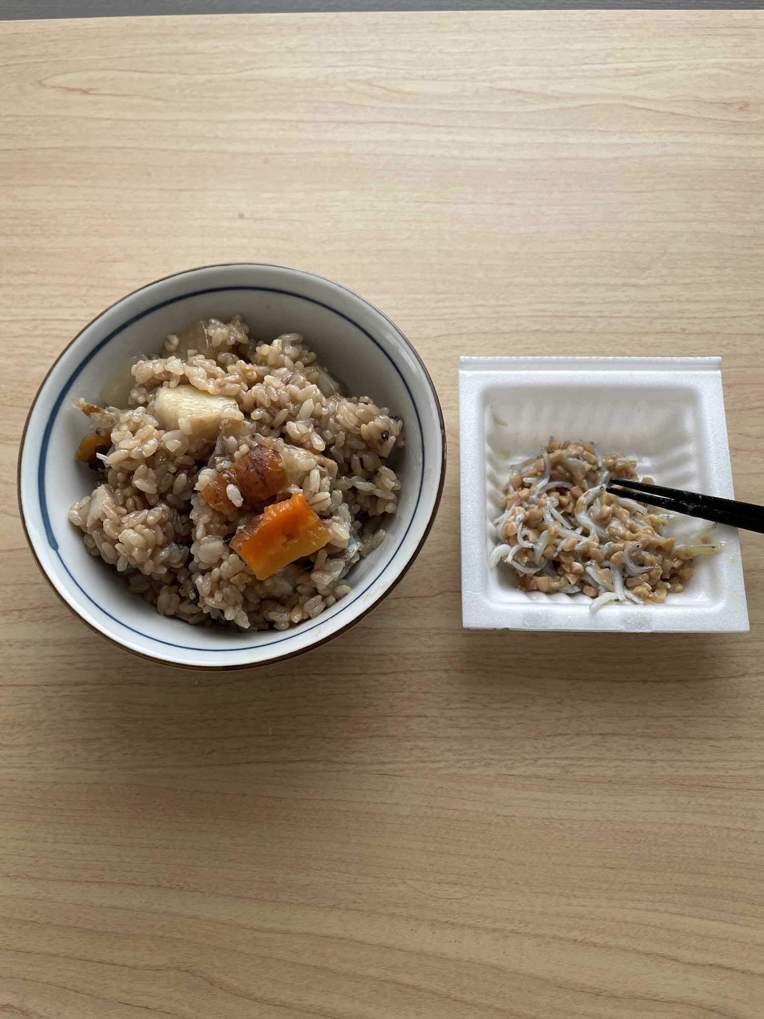 朝ご飯は、今日も圧力鍋炊き込みご飯。
