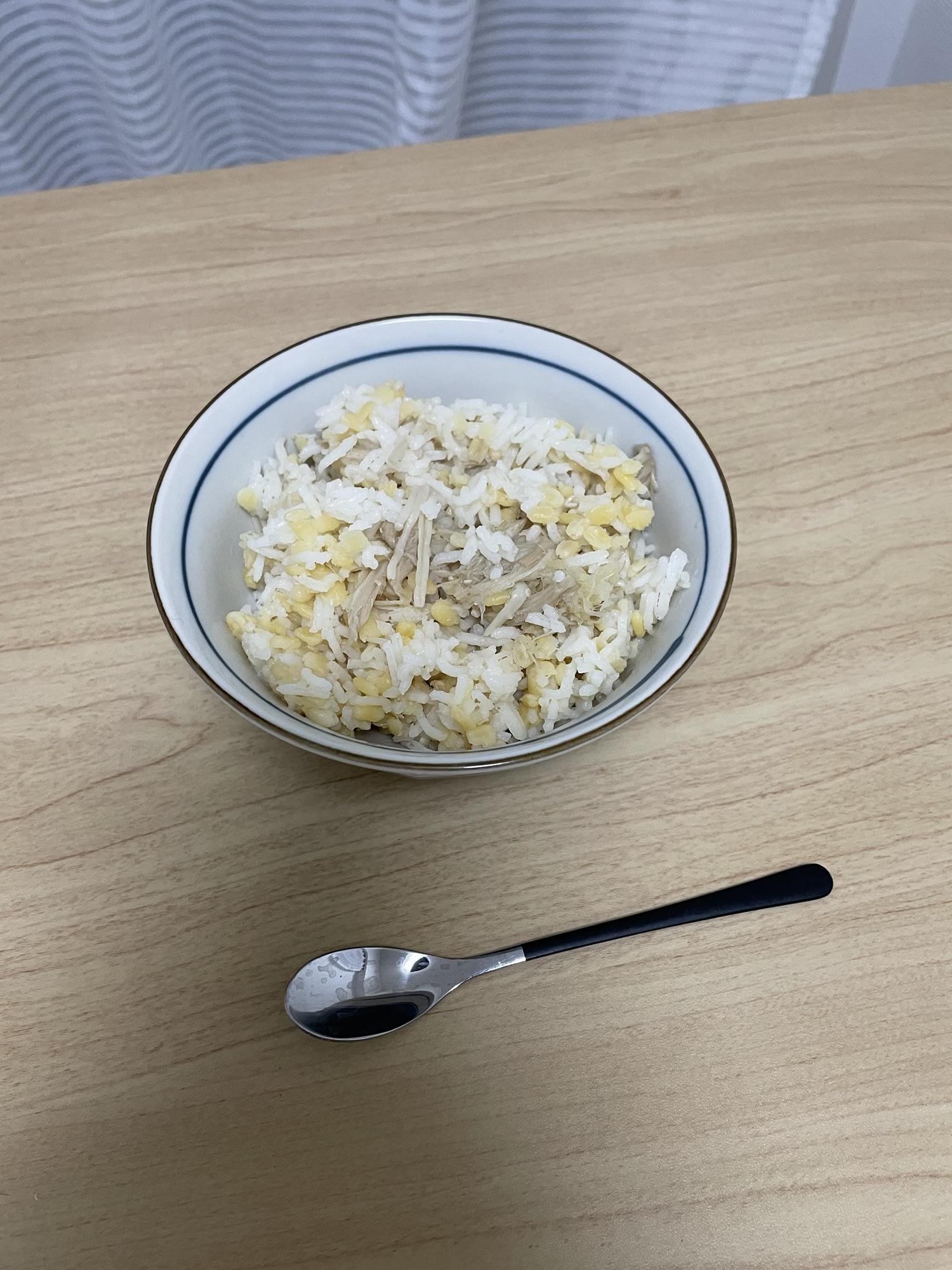 夕飯は、見た目は映えないけど、素朴で美味しいダールえのき炊き込みご飯。