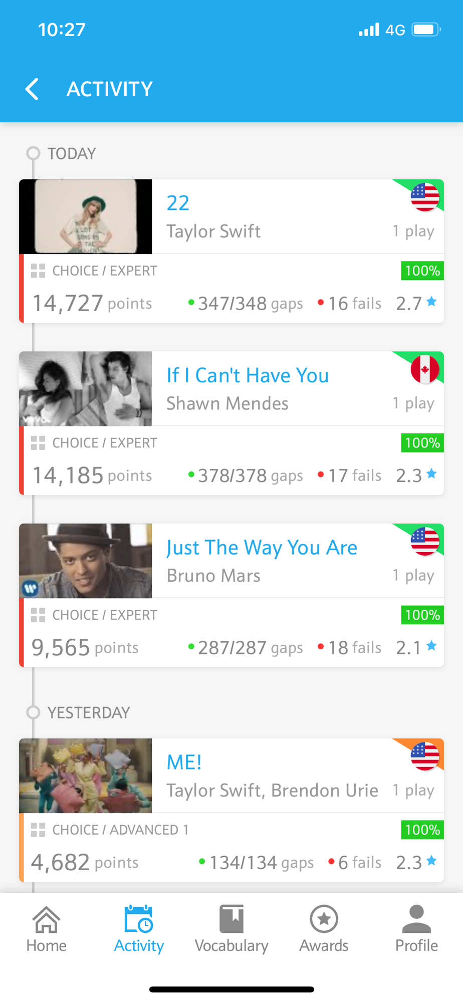 英語音楽学習アプリで、ついに最難関モードに挑戦。
