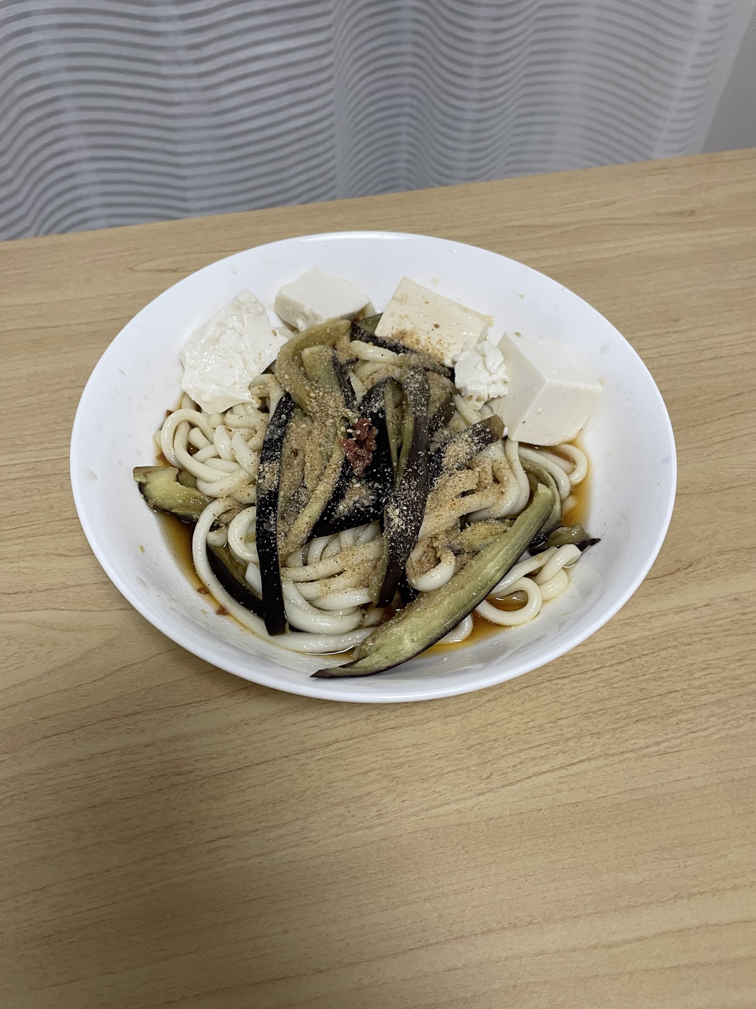 夕飯は、冷やし茄子梅だれうどんを作ってみた。