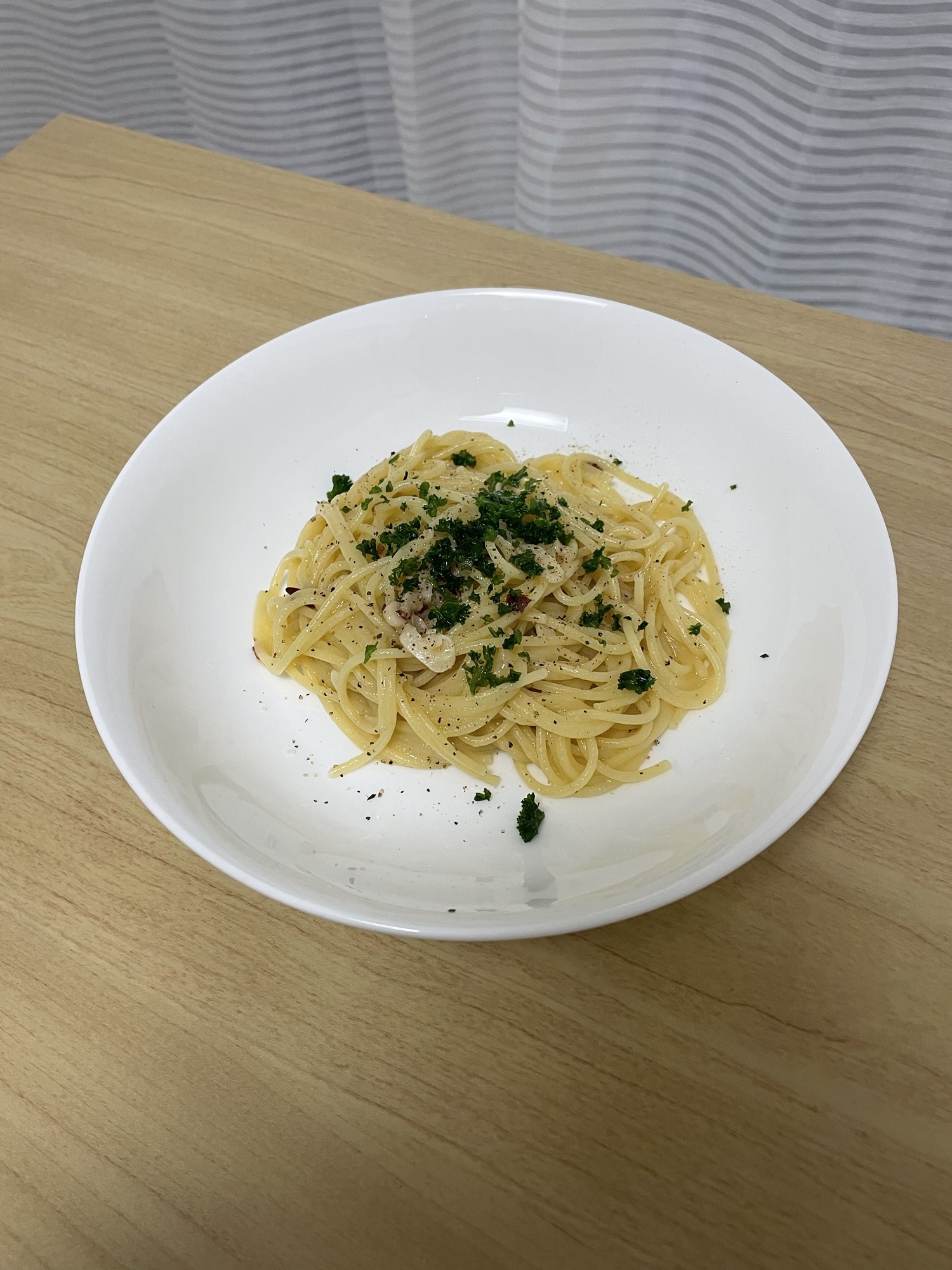 いつも100gのパスタをお腹の空き具合に合わせて70gで作ってみたり。